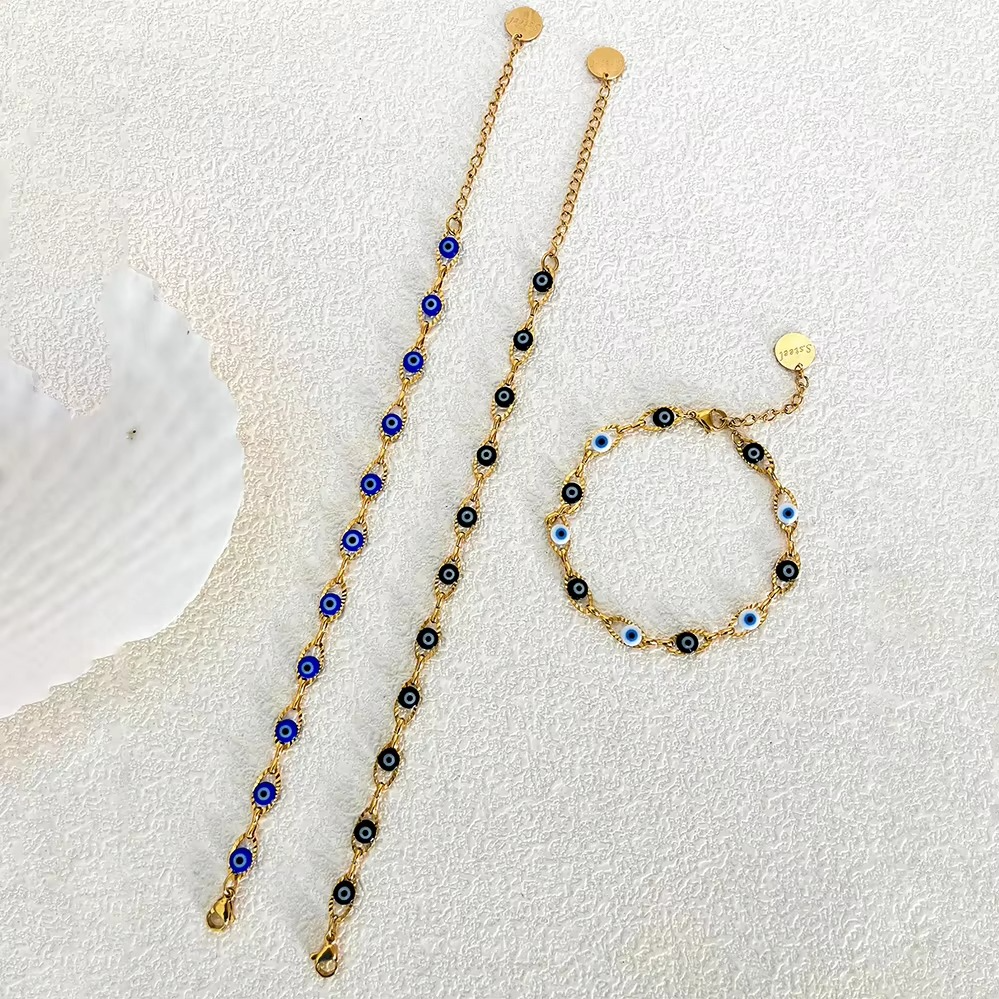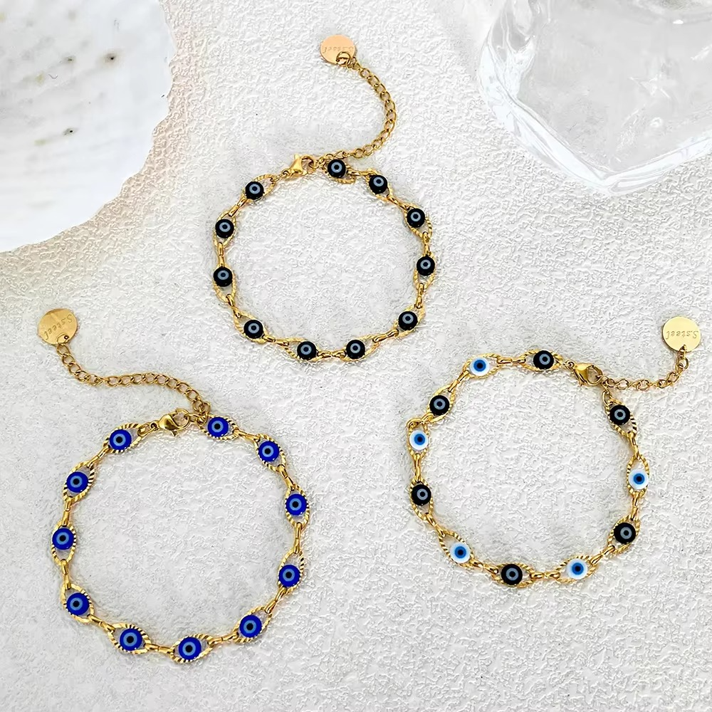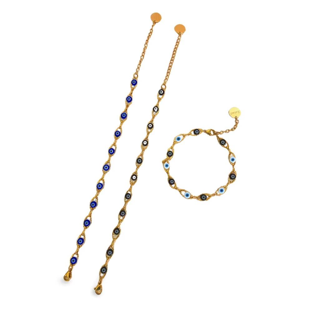Protect your vibes in style with this gold-plated Evil Eye bracelet. Crafted from durable stainless steel and finished with a sleek 14K gold layer, it’s perfect for everyday wear. Unisex design makes it a classy and meaningful gift for anyone.