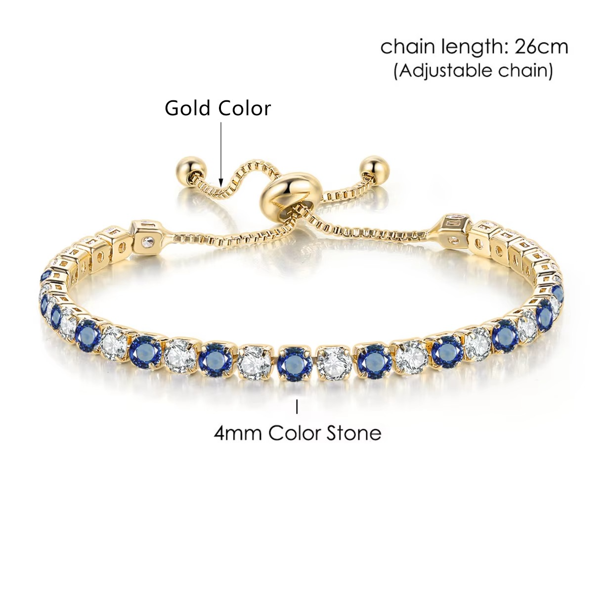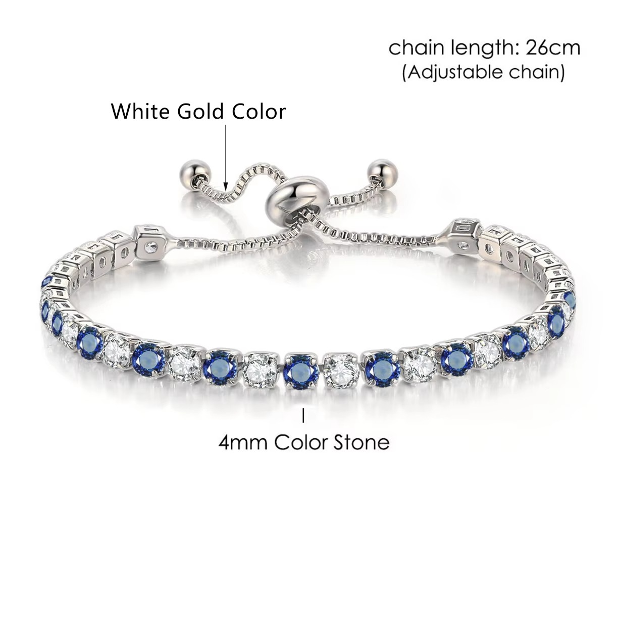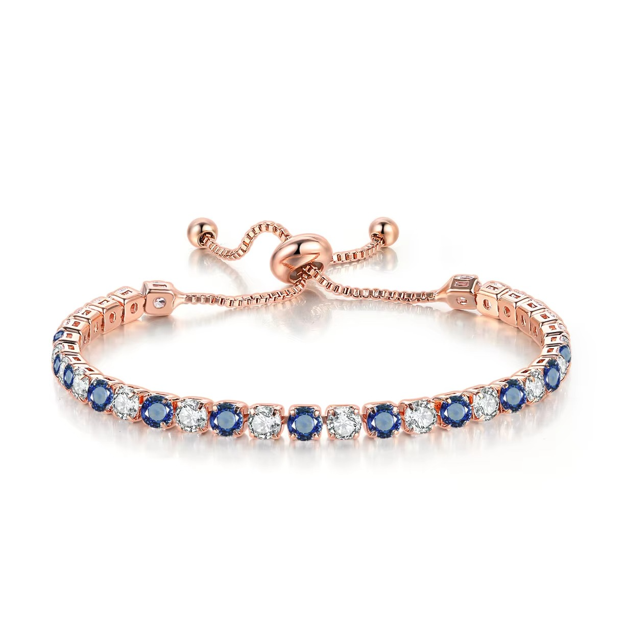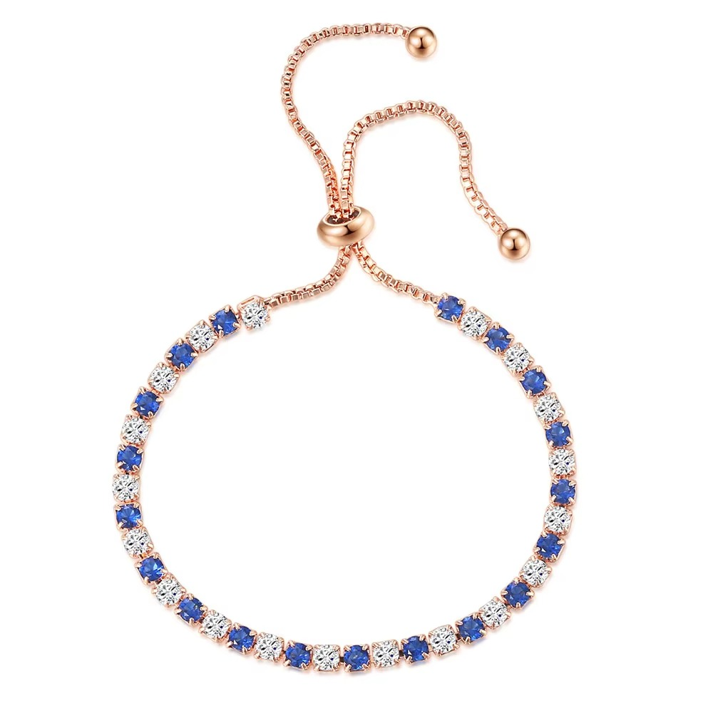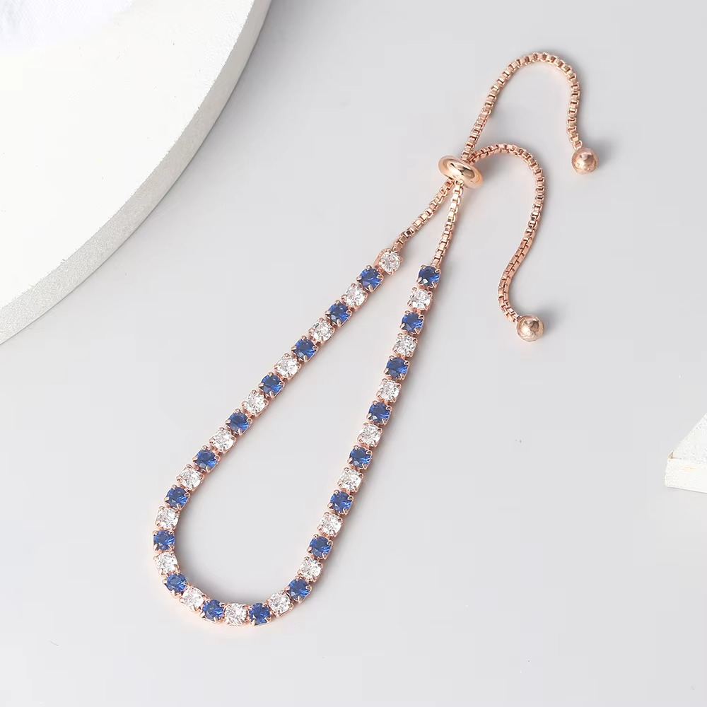 Add timeless elegance to your look with this rose gold tennis bracelet, featuring simple 3x3mm round blue zircon stones. Lightweight and stylish, it’s the perfect accessory for everyday wear or special occasions. A lovely gift for women and girls who love Korean fashion.