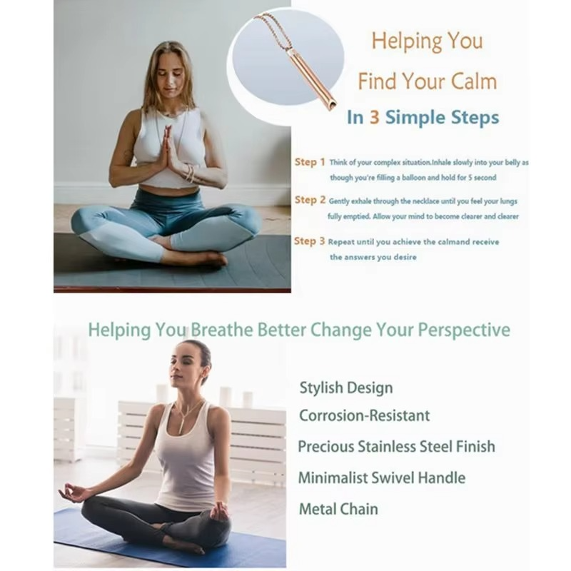 Breathe deeply and stay centered with this Stainless Steel Breathing Necklace for Women — a beautiful and calming accessory designed for stress relief, meditation, and mindfulness. This necklace serves as a portable breathing tool, helping you practice slow, controlled exhalation to reduce anxiety anytime, anywhere.